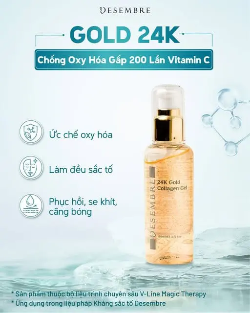 Gel vàng 24K Desembre (Derma Science 24K Gold Plus Collagen) là sản phẩm dưỡng da cao cấp đến từ Hàn Quốc, kết hợp vàng 24K + collagen + chiết xuất thiên nhiên, giúp phục hồi – cấp ẩm – trẻ hóa da hiệu quả.