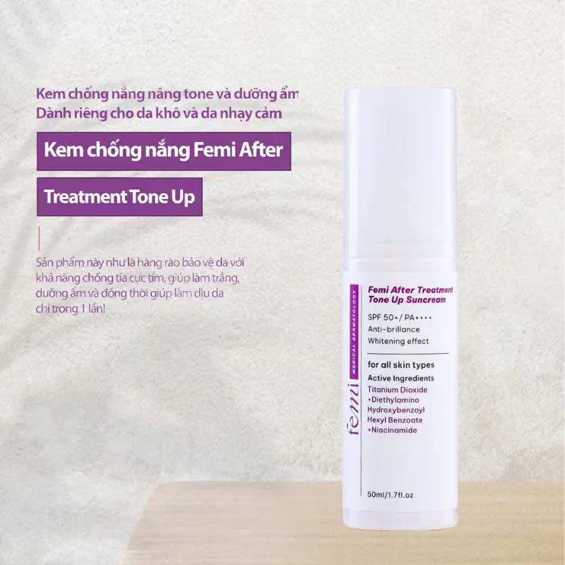 Kem Chống Nắng Femi Nâng Tone Cho Da Nhạy Cảm After Treatment Tone Up Suncream SPF50+ – Bảo Vệ & Phục Hồi Da Sau Treatment