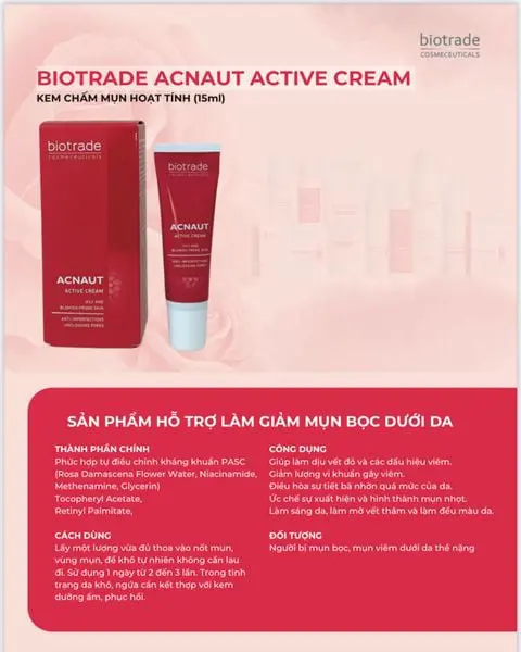Với những ai có làn da bị mụn viêm, mụn mủ, mụn đầu đen, mụn đầu trắng.…ở mặt, lưng và cổ thì còn chần chờ gì nữa, hãy sử dụng Acnaut Active Cream của Biotrade ngay nhé!