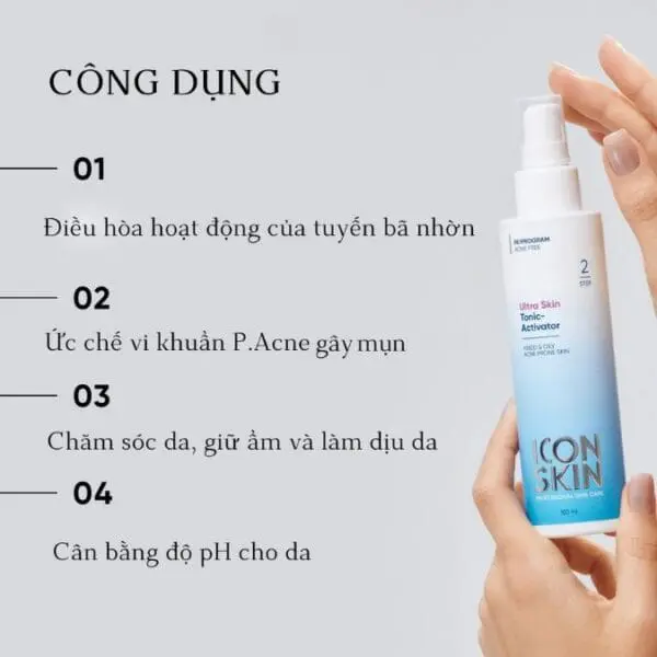 Nước Cân Bằng Icon Skin Ultra Skin Tonic Activator 150ml là dòng nước cân bằng (toner activator) chuyên sâu dành cho da dầu – da mụn – da hỗn hợp, giúp làm sạch sâu, cân bằng pH và hỗ trợ điều trị mụn hiệu quả.