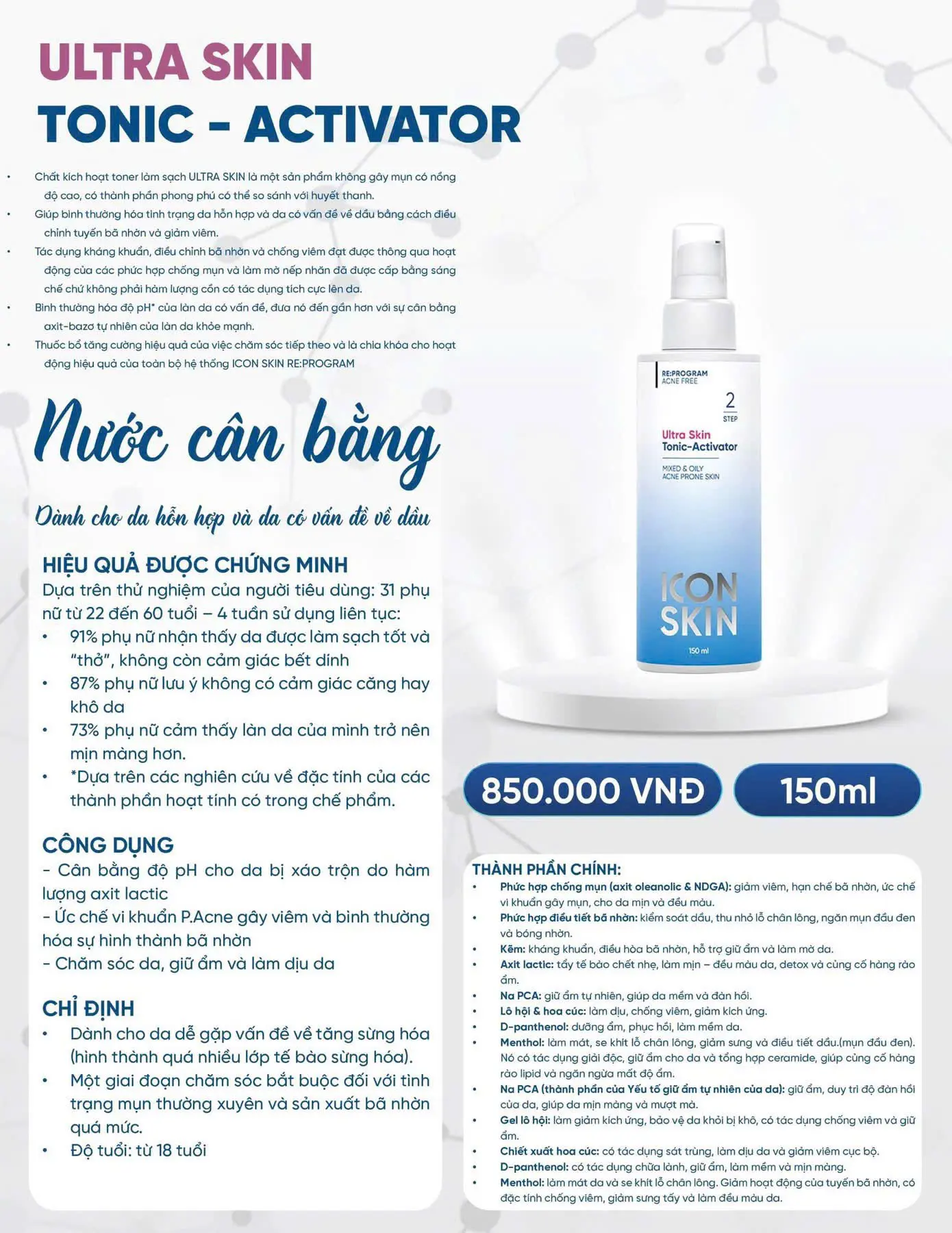 🔬 Thành Phần Chính Nước Cân Bằng Icon Skin Ultra Skin Tonic Activator 150ml