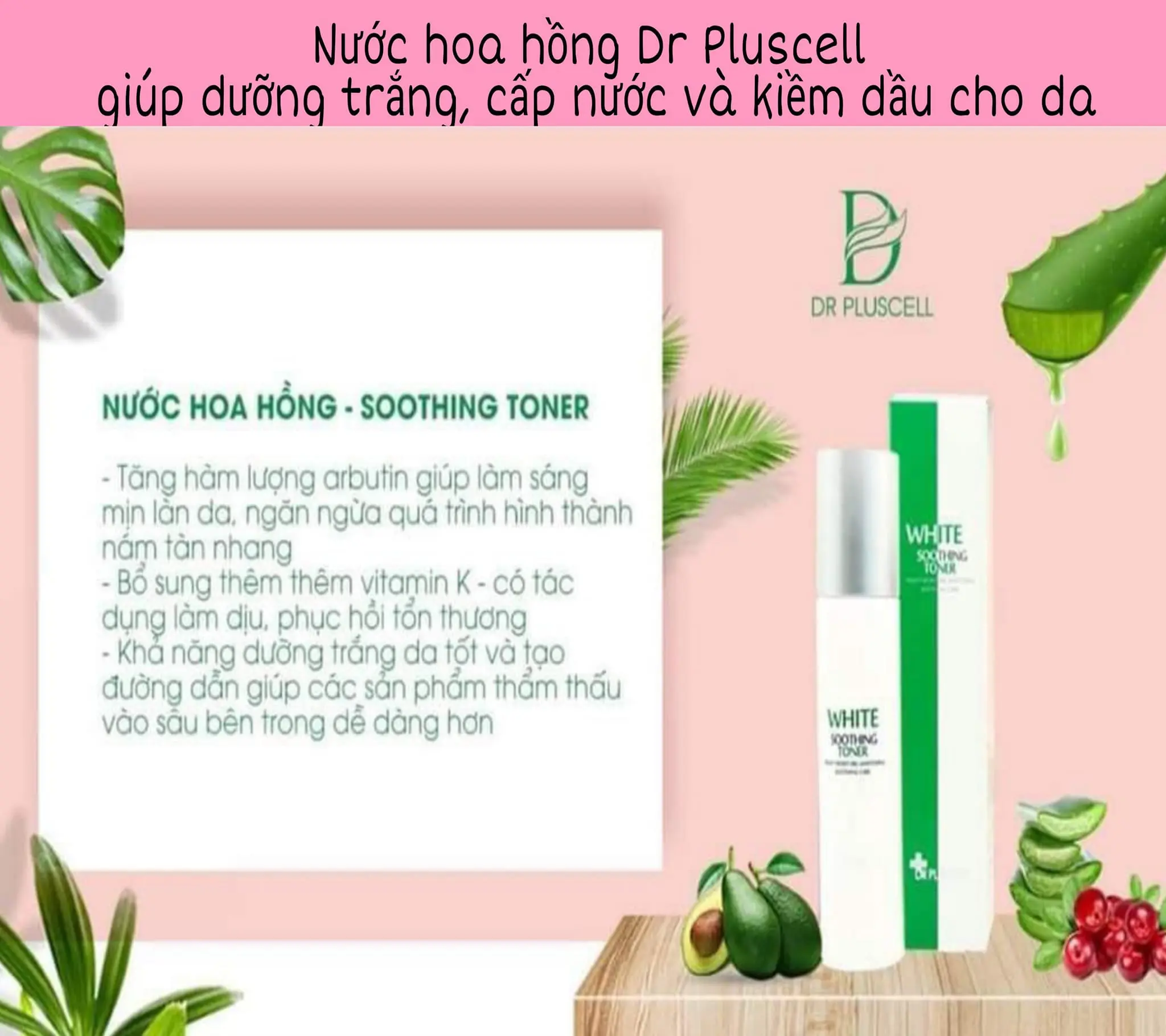 Nước hoa hồng – White soothing Toner Dr-pluscell dạng xịt giúp tăng cường độ ẩm cho da, cân bằng pH, giảm dầu, giữ lớp trang điểm bền và hạn chế tiếp xúc với da, phù hợp với mọi loại da, đặc biệt cần thiết cho da nhạy cảm và da sau điều trị.