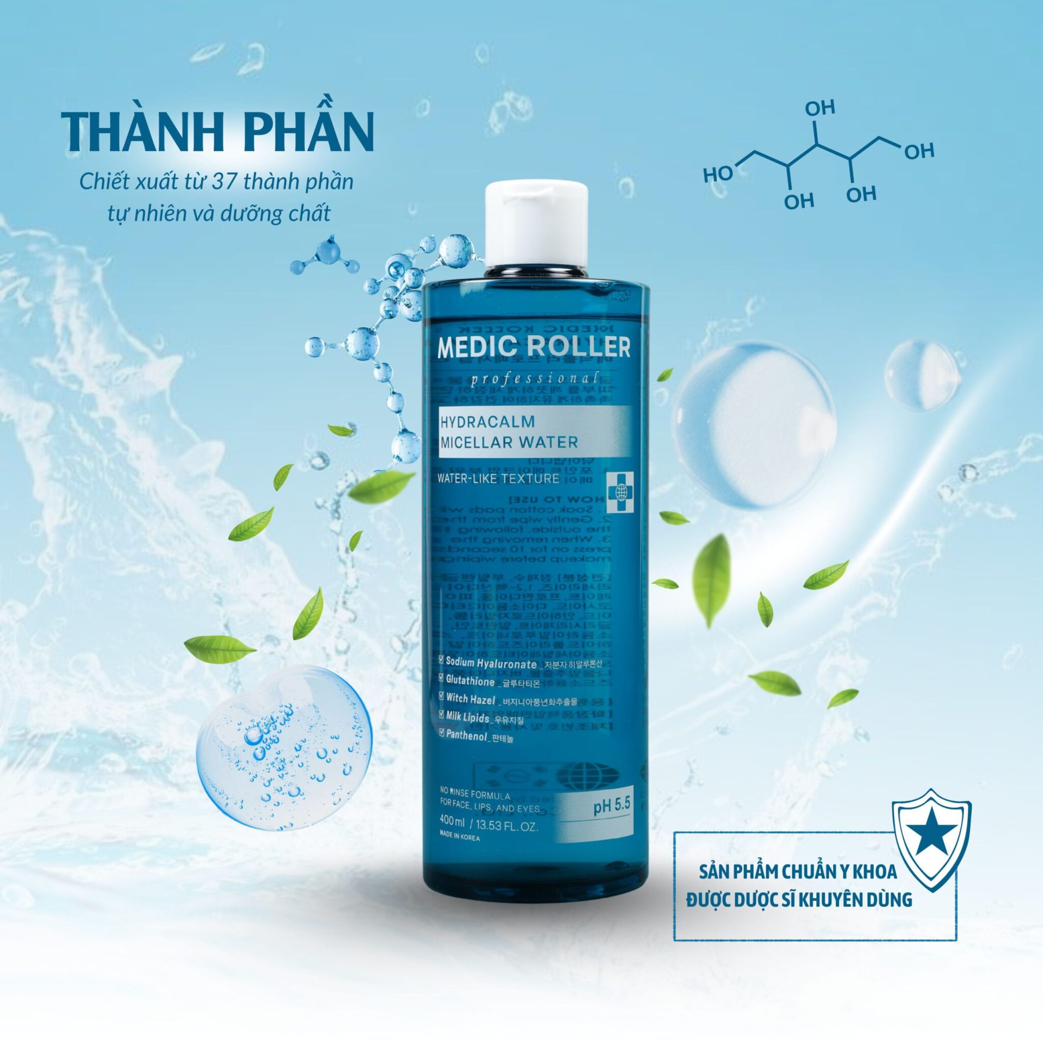 Nước tẩy trang Medic Roller chứa các thành phần an toàn và lành tính: