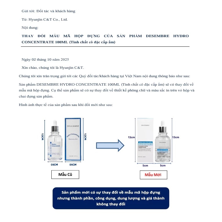 54 đánh giá cho TINH CHẤT HA CẤP ẨM DESEMBRE 30ml-100ml mẫu mới 2026